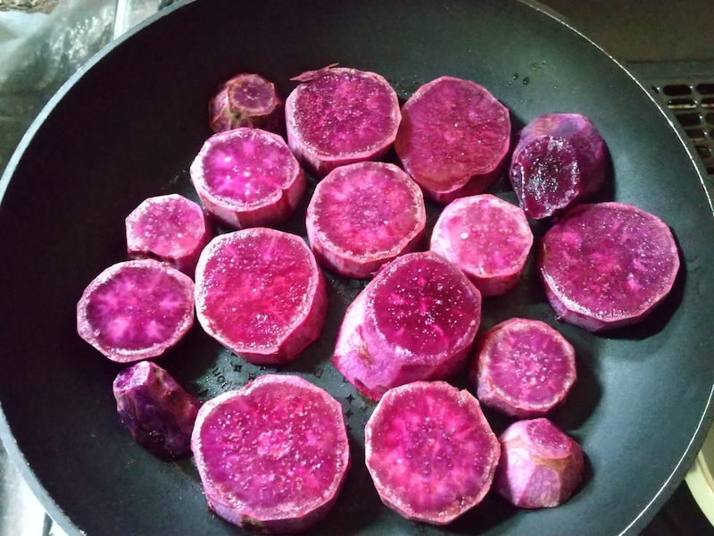 焼き芋用の鍋へお芋を入れて弱火で1時間焼くだけで誰でも美味しい焼き芋出来るよ。詳しい焼き方は問い合わせてください。