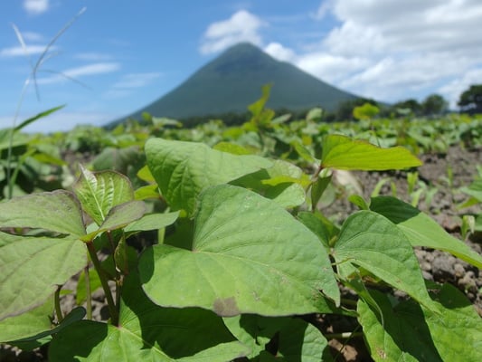 火山の跡の畑で石がとても多く痩せた畑で石に当たり苦労して曲がりながらも